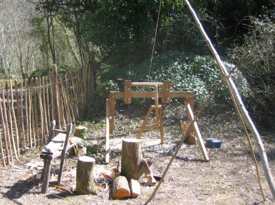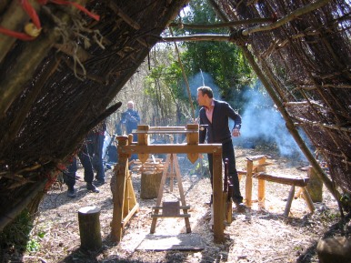 trail into a centre for old crafts, primarily Pole Lathe turning. All the resources for this project have been extracted from the Westdene woods near Chichester (many thanks to Richard Ede). It is hoped that the Glade will become a focal point for old crafts over the ensuing years and will promote their continued existence, and thereby educate visitors on the need for sustainable woodlands and the protection of the environment. Crafts such as Pole lathe turning, hurdle making, besom broom making (see Arthur on site for more information), rake making and much more. Also courses in pole lathe turning will be offered and it is hoped that through this the group will grow in number and eventually it will be possible to have someone in attendance when ever the Museum is open to the public.