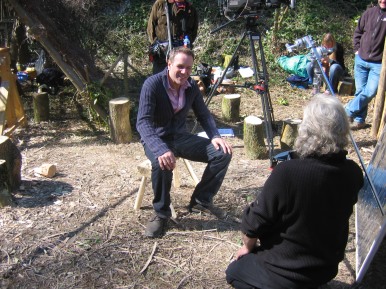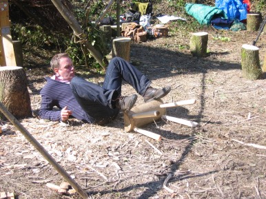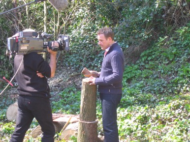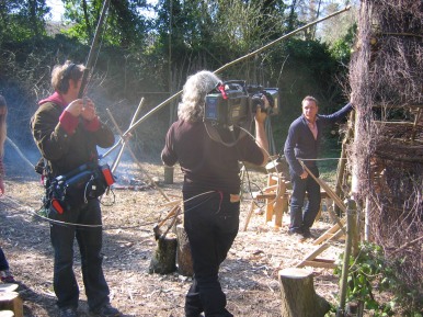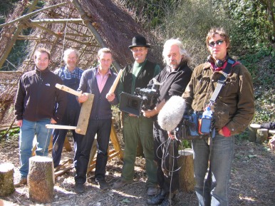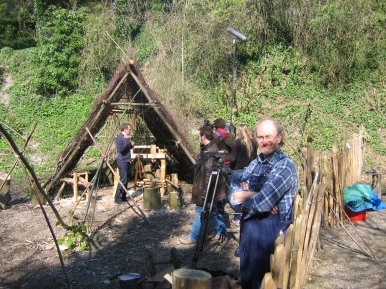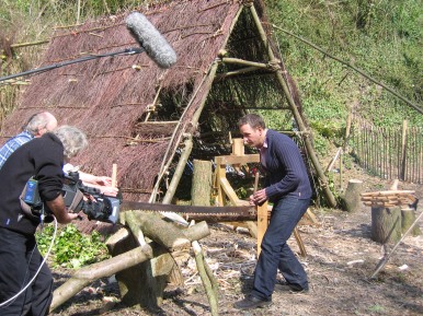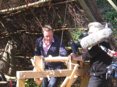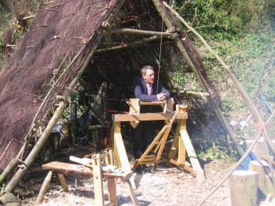 in the Glade 2006/7 A film crew working for the Discovery Channel did some shooting in the Glade at Amberley Museum during April 2006. The object of the exercise:- A documentary to show how old crafts supported the furniture industry in years gone by. It was a question of Colin and Mike showing the presenter how to perform a task then he would present to camera doing the set task. Not badly done considering he had not attempted anything like it before (or was it our tuition...........??) The finished programme shown Winter 2006/7