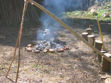 During the winter of 2005 and into 2006 we set up a more permanent demonstration area in a woodland glade and accessible via the nature trail. The main feature is the construction of a 'Bodgers Hovel', a shelter traditionally used by woodland workers to sleep, eat and shelter in. Wood for the hovel and other display items were sourced locally from managed woodlands and brought onto the site. The Amberley site itself is unable to sustain high rates of cutting at this time in its evolution. Hazel is being planted near to the Glade and will eventually provide some coppice wood. Note since the summer of 2017 the bodgers hovel has been taken down as it was getting unsafe. The area is now being reused as a classroom for outside learning, woodland crafts and Forest school activities. More information is available upon contacting Colin. |